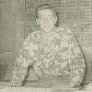 Bob, or "Hank" as he is called, is 5 feet 11 inches, weighs 160 pounds, has brown curly hair, and blue gray eyes. He can usually be seen riding around in a blue "Chevy" or at Reno's. "Hank" enjoys watching Arthur Godfrey on television; smiles at the name of "Margie;" collects stamps; likes English; favors Mr. Mease as a teacher and has a favorite sport, football.