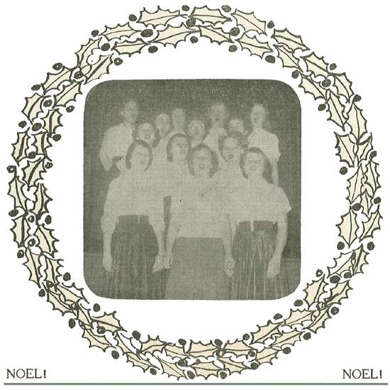 The Girls Chorus sang the following numbers: "Christ Child Divine." "As It Fell Upon the Night," "Mark the Herald Angels Sing," "Blessed Christmas Morning," and the following discounts: "0 Little Town of Bethlehem," "Christmas Bells," "We Wish You a Merry Christmas," "White Christmas." The accompanist is Martha Keller.