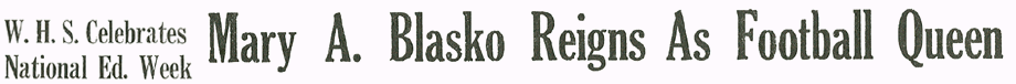 The boys who will be candidates for the king are the varsity players, and managers and one junior boy who is playing his last year of varsity football. They are: Fred Greene, Bob Halcovich, Terry Fagan, Ed Hordubay, Ralph Facciani, John Sombronsky, Dudley Hunt, John Hajnos, Chuck Baughman, "Hank" Hudy, Gerald Kephart, Bill Keller, George Zindash, Stanley Kush, Joe Sendek and "Bombo" Clark.