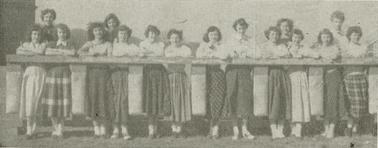 Mary Ann Blasko was elected queen of the Varsity "W" Dance, Friday, November 20. Gerald Kephart was elected king. The contestants for queen were, left to right: Helen Rakoczy, Helen Crawford, Dorothy Luch, Frances Tantorno, Elizabeth Farkash, Lillian Hromack, Susan Grimison, Veronica Malik, Mary Ann Stopko, Susan Bounds, Sally Morris, Barbara Stone, Mary Ann Blasko, Doris Ripple, Eleanor Voytko, and Peggy Trysnicky. Barbara Botlock was not present when this picture was taken.