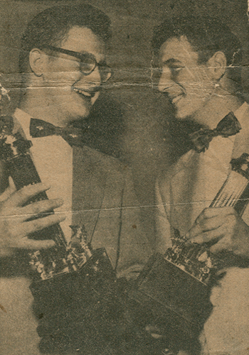 WINDBER-Most outstanding among the athletes to perform in Windber Stadium during the past year were tackle Edward Hordubay (left) and back Bob Hudy, both of Windber High School. Trophies were presented the pair during a banquet in honor of the Rambler team last night. The awards were sponsored for the fourth year by the Windber Junior Chamber of Commerce.