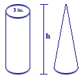 56. Ted poured 198 cubic centimeters of sand to fill the cylinder below. How much sand is needed to fill a cone of the same height and with a base of the same radius?
